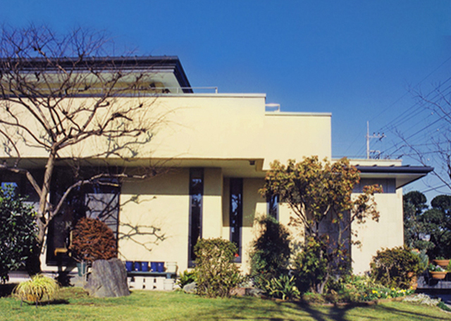 洋風モダンリビング 建築データ 群馬県桐生市内 木造2階建て 外壁:モルタルスタッコ仕上げ 面積:96坪 音楽を楽しむのことが好きなお施主さま。外観のトーンを暖色系の色にして温かさを演出しました。室内も統一して、モダンに仕上げました。